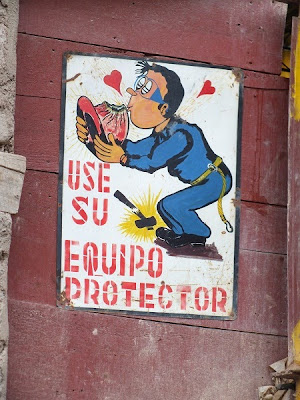 Next we changed into our gear for the day, consisting of rubber boots, a mud proof shirt and pant set to protect our clothes, and a headlamp with a belt holding the battery pack. We were then shown a processing center for the raw silver ore, where up to 200 tones of rock are sorted daily. Our imaginations were to work because the workers were all elsewhere due to the holiday.